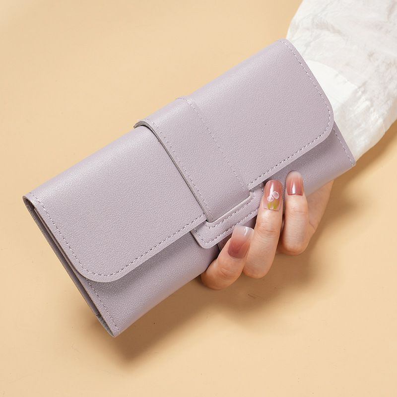 Portefeuille a Multifonction pour femme Long à trois volets à rabat Style coréen Petit étui frais Position de la pièce Multifonction Boucle Portefeuille