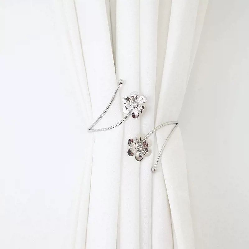 Embrasse de rideau réglable en métal avec fleurs – Clip décoratif pour rideaux, maison et intérieur chic