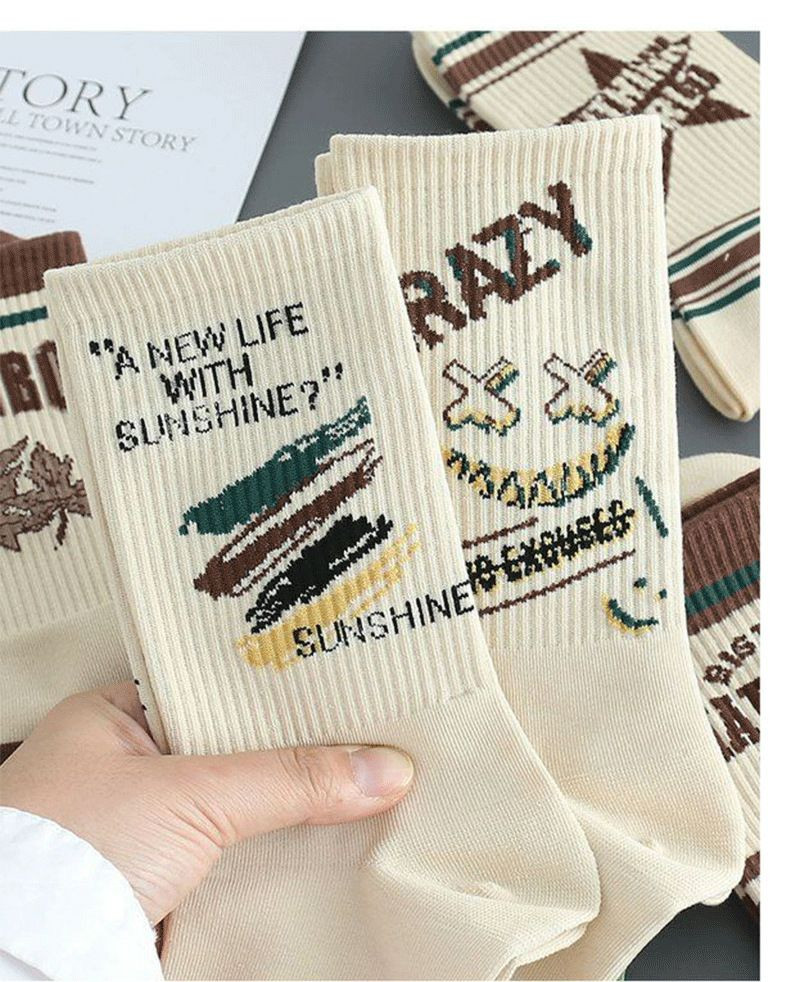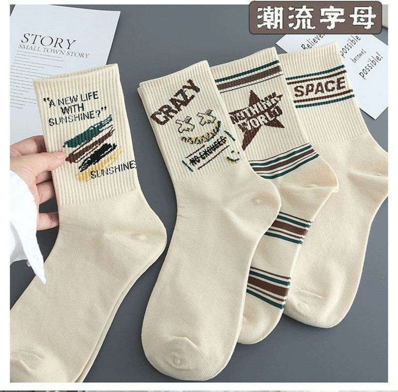 Chaussettes décontractées unisexes à imprimé lettres de style rétro.