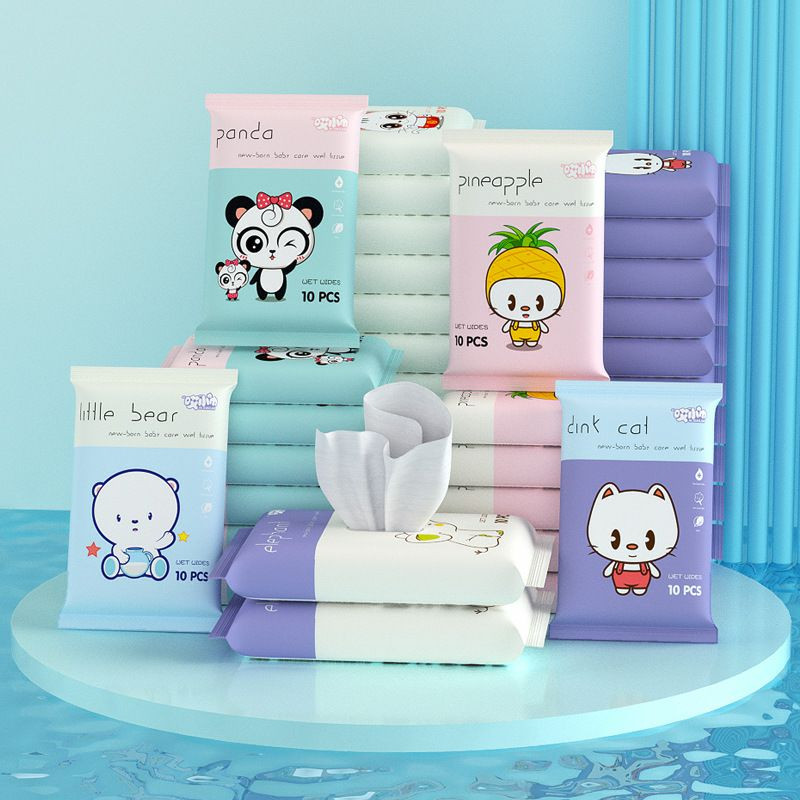 10 morceaux de lingettes humides, lingettes pour les mains et la bouche pour bébé, dix morceaux de lingettes humides non tissées