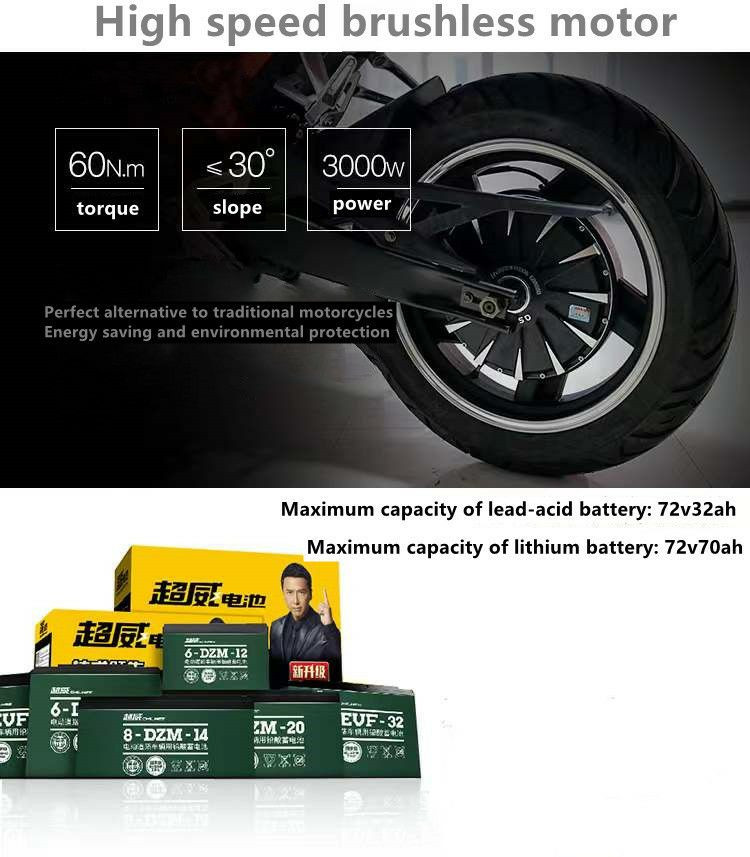 Moto électrique V8 Moto électrique de 17 pouces 72V Moto électrique de 2000W Moto électrique à alimentation directe moto électrique urbaine transfrontalière
