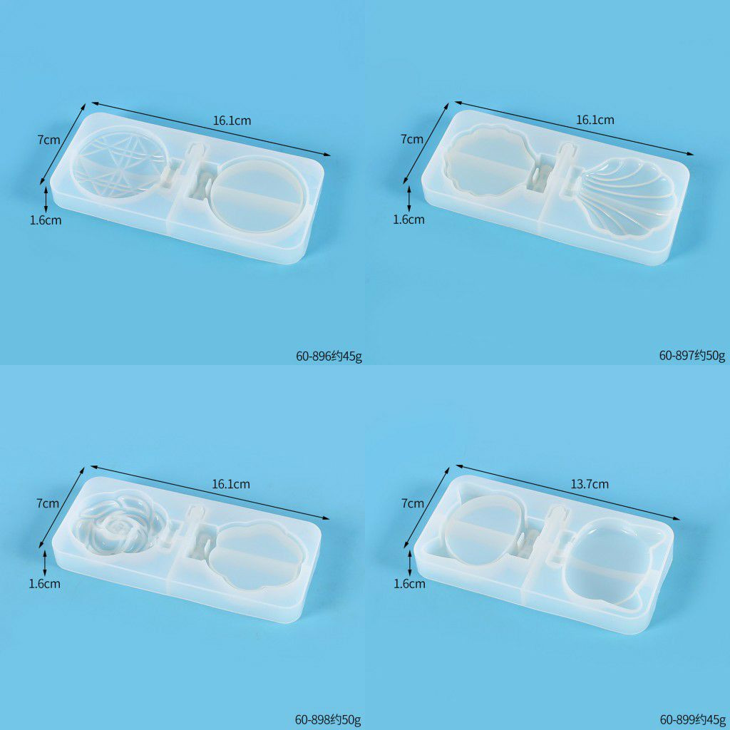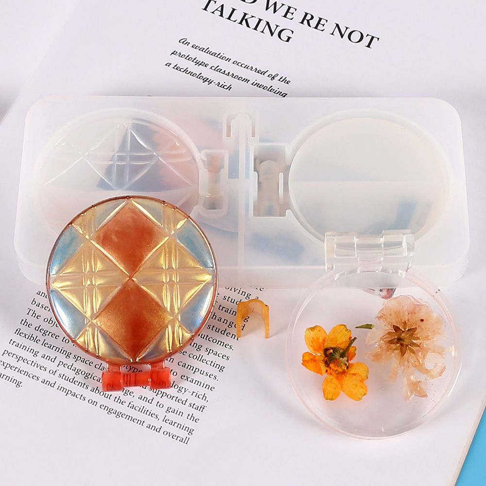 Moules en silicone pour créer des miroirs de poche en résine époxy.