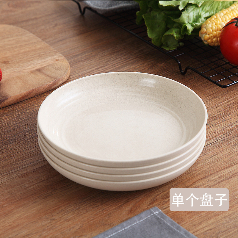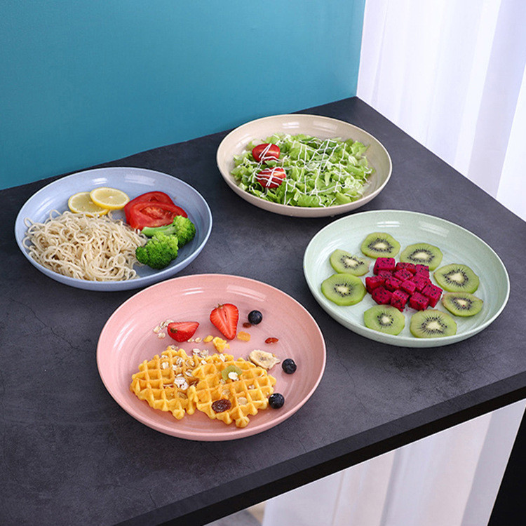 Assiette de légumes ronde en paille de blé - Grande assiette de légumes résistant aux collations - Assiette en plastique (Possible d'imprimer votre Logo en gros)