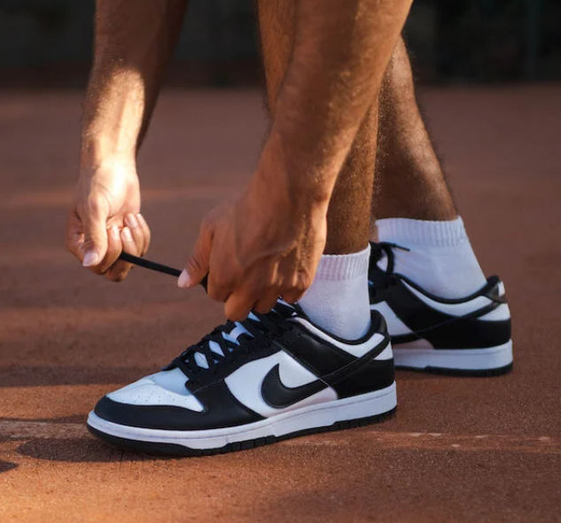 La Nike Dunk Low Black White est dotée d'une tige en cuir blanc avec des empiècements en cuir noir pour un contraste net. La marque NIKE est appliquée sur la languette et la semelle extérieure. La palette de couleurs noir et blanc se poursuit également sur la semelle de la silhouette.