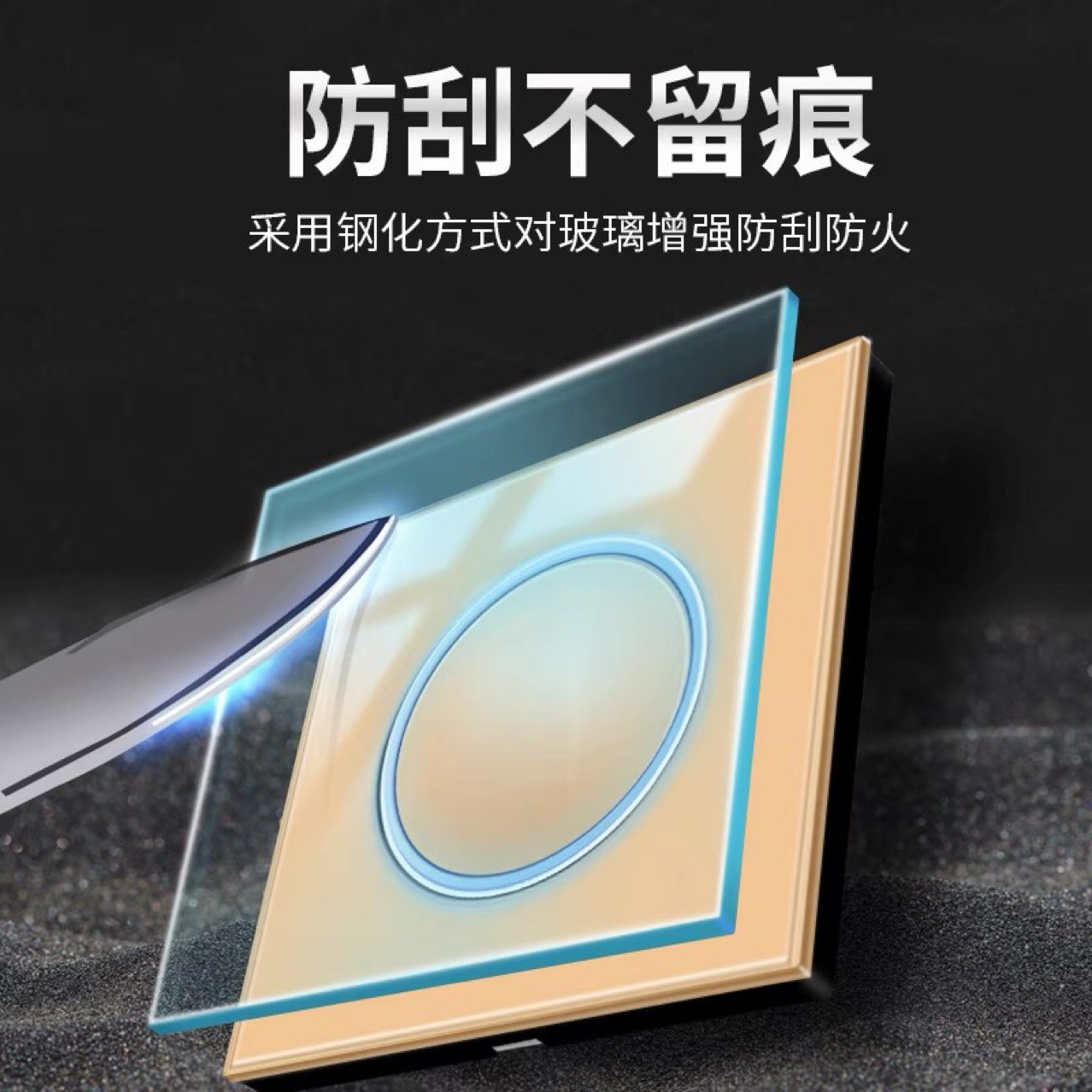 ComOne: Interrupteur électrique circulaire unique International TCL type 86 doré et avec du verre trempé - Interrupteur rond de luxe pour lumière de maison