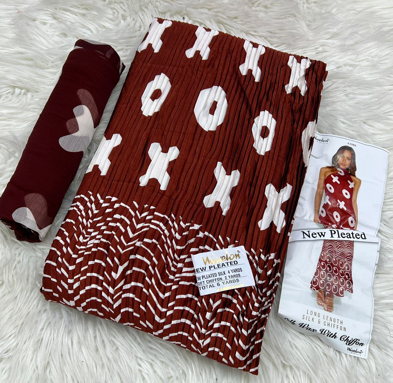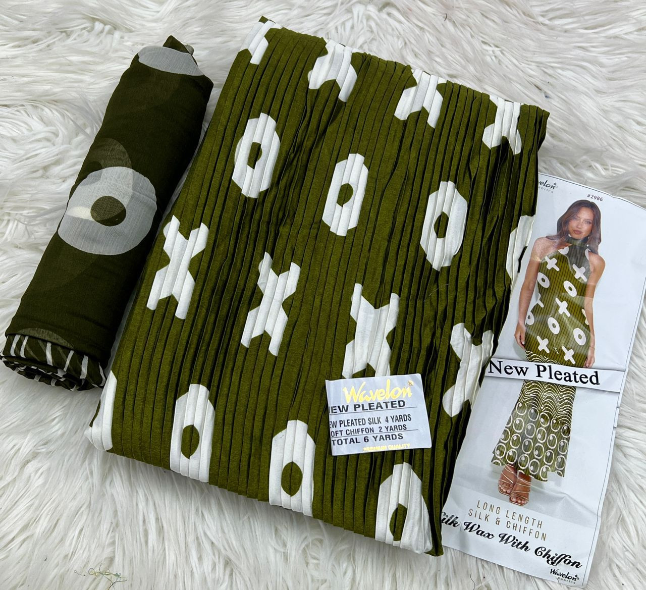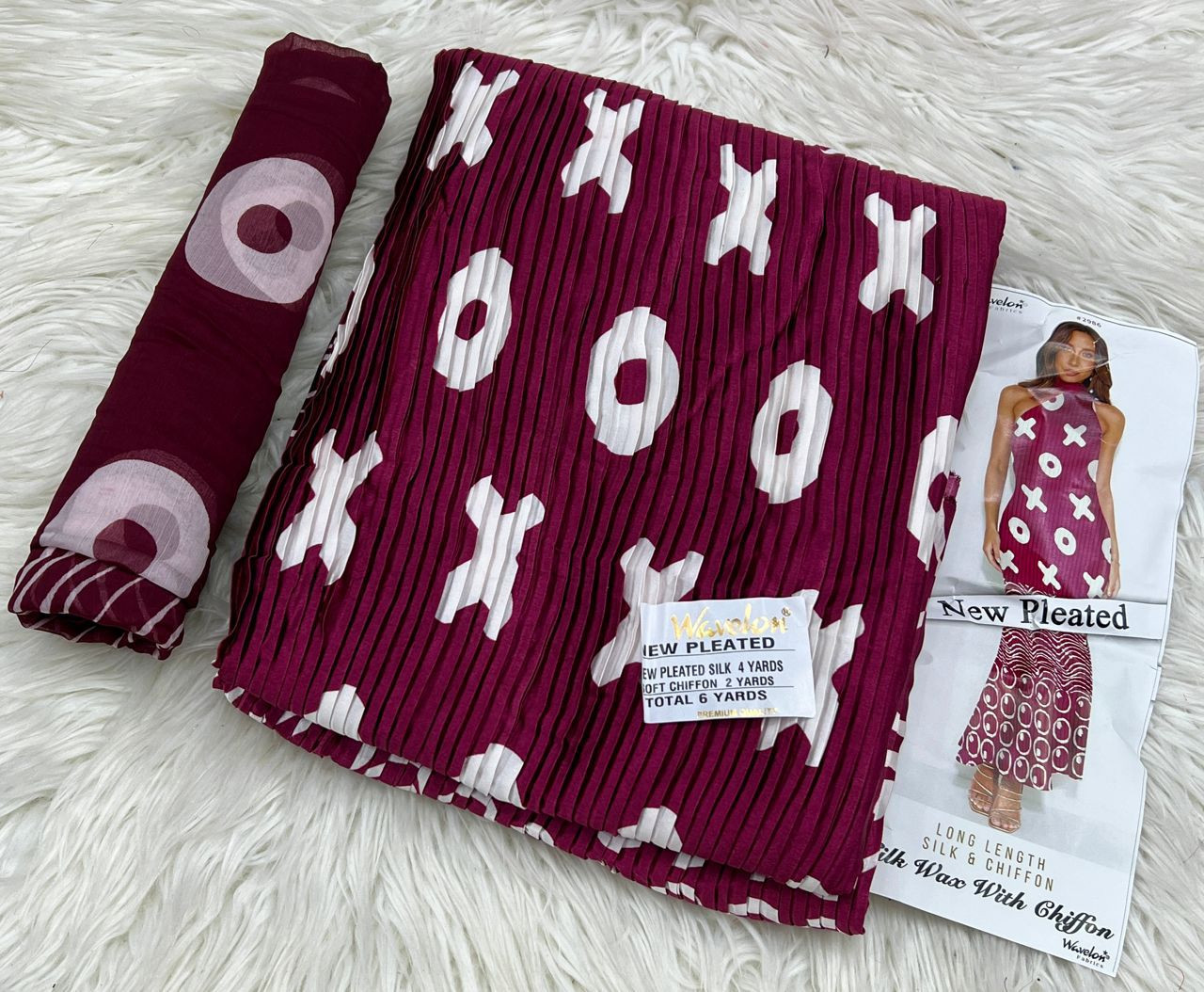 Tissu soie Wavelon plissée 4yards de tissu+2 yards de foulard=6yards